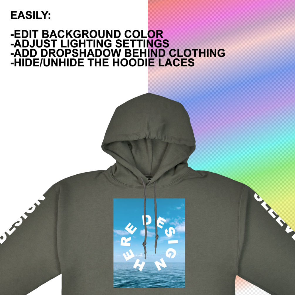 With this unique-shot of 4500x4500 pixels mockup of the Gildan (18500) Hoodie, you will have the ability to edit: